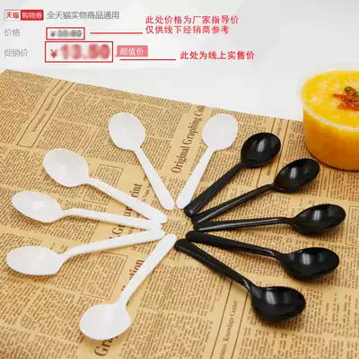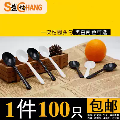 Shengchang disposable plastic spoon Dessert ice cream spoon Taro ball roast fairy grass delivery rice spoon Black and white 100 pcs