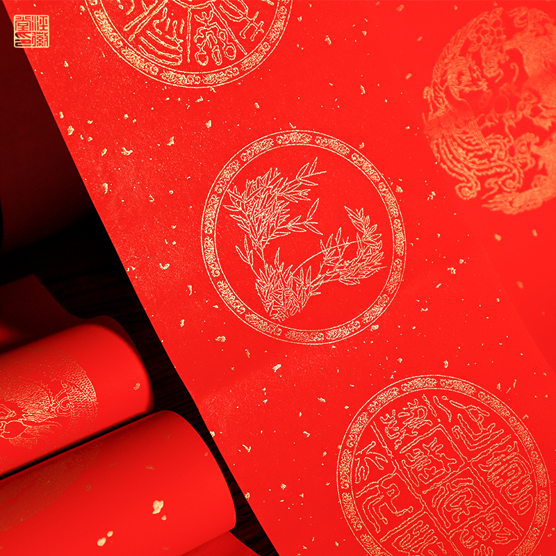 Couplet Red Paper Ten Thousand Years Red Rice Paper Couplet Paper Sprinkled Golden Dragon Phoenix Big Red Paper New Year Door Joint Brush Calligraphy Handwriting Blank Spring League Five Words Seven Words Nine Words Eleven Words Wholesale 2020