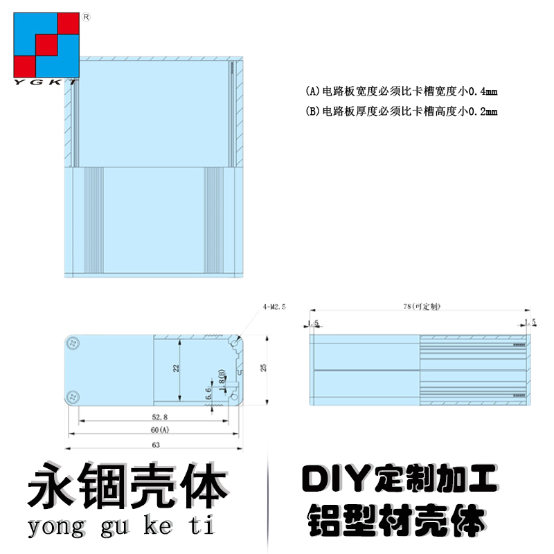 63*25 aluminum alloy electronic equipment circuit board junction box Aluminum shell custom aluminum extrusion material Power controller box