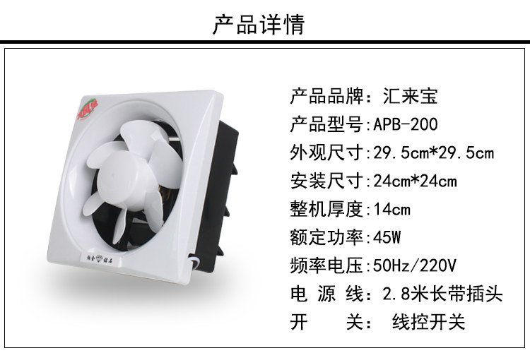 Powerful exhaust fan household silent exhaust fan kitchen window lampblack ventilation fan exhaust fan powder room ventilation fan