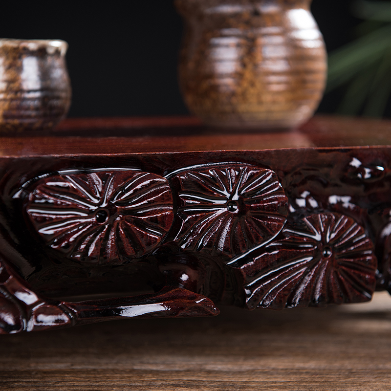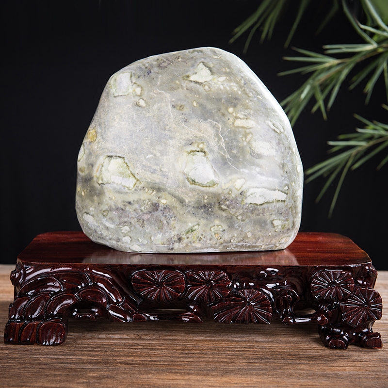 C061 Large Size Jade Stone Base Rectangular digging trough solid wood flowerpots View swing piece Base stone Wooden Shelf