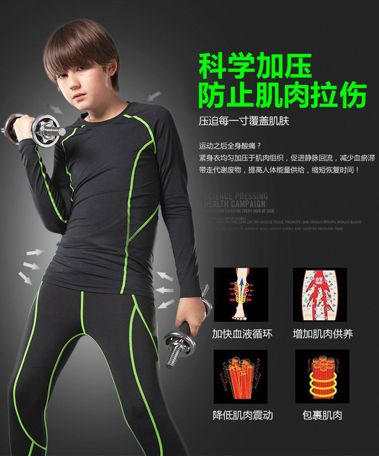 Children's sports tights Long sleeve suit Men's winter plus velvet warm stretch pants Basket football base training