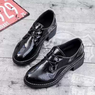 College style black small leather shoes new wild autumn Korean version of low-heel flat single shoes lace student Harajuku women's shoes
