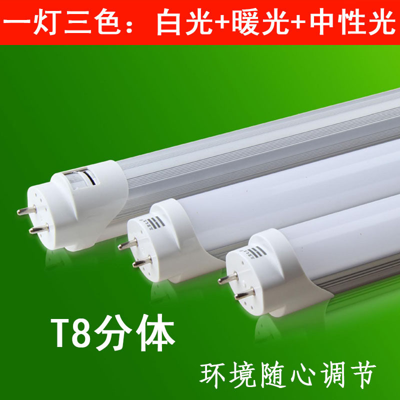 LED lighting tube triple color light changing T5T8 integrated two-piece super bright segmental bicolor energy saving day light pipe retrofit bracket