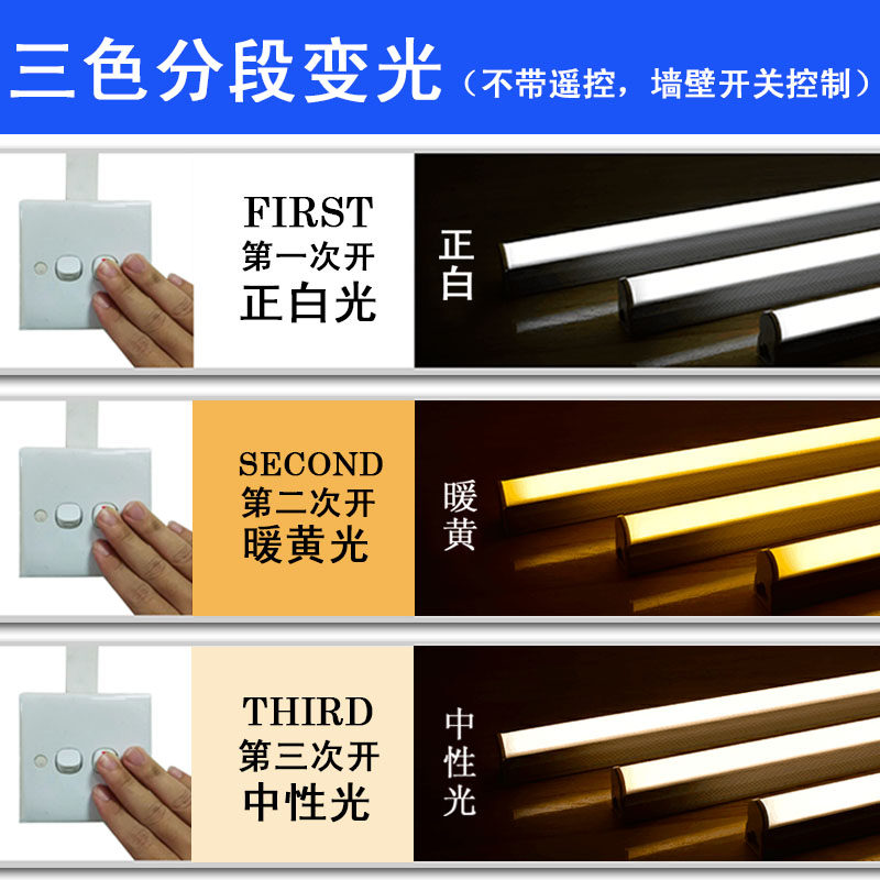 T5 all-three chromatic light-all-plastic T8 integrated three-colour light-aluminium shell T8 two-piece three-colour light-changing light-aluminium shell T5 integrated three-colour changing light-aluminium shell T5 integrated monochromatic white light-luxury section T8 one