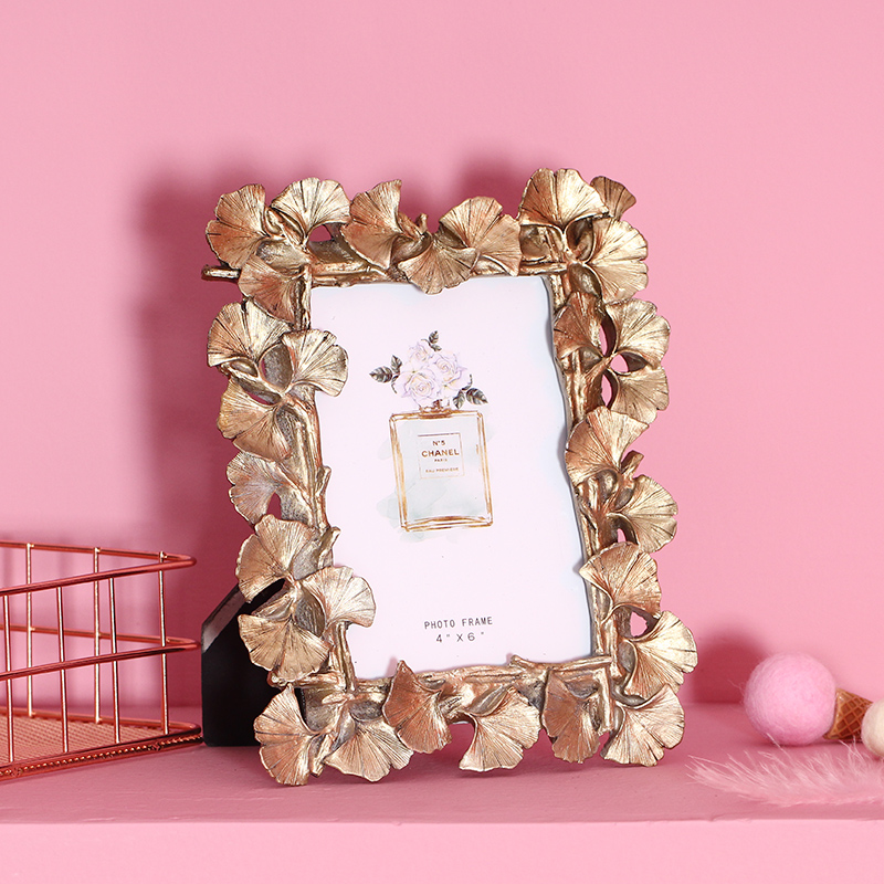 Four-inch ginkgo frame 6-inch ginkgo biloba photo frame golden 6-inch large oval small oval mid-horn