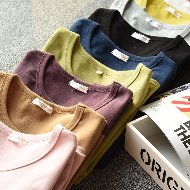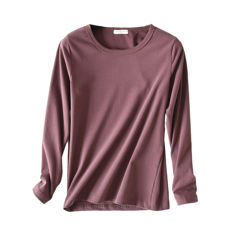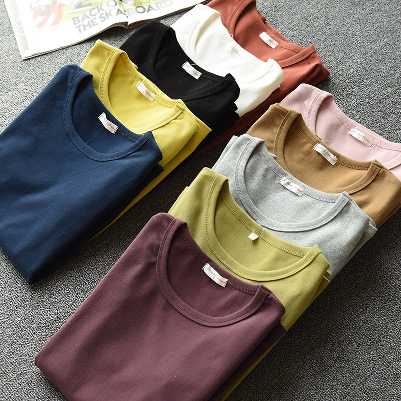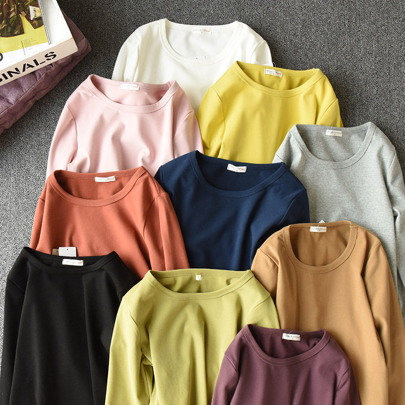 Women's cotton T-shirt base autumn coat top Thick base sweater Candy color round neck women's spring clothing