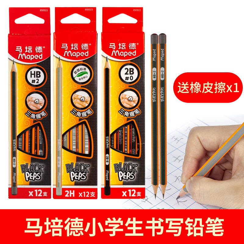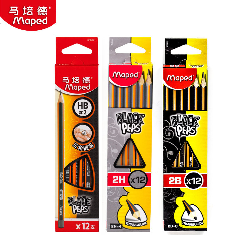 Maped Drawing pencil Writing pencil triangle 2B exam children's correction grip 2h pencil Primary school student 2 than hb pencil First grade sketch with kindergarten beginner ballpoint pen