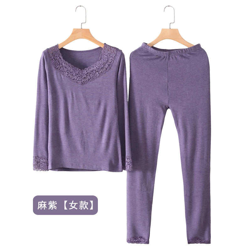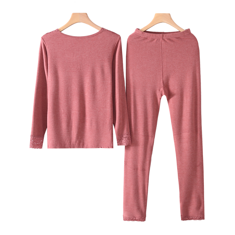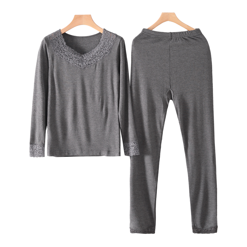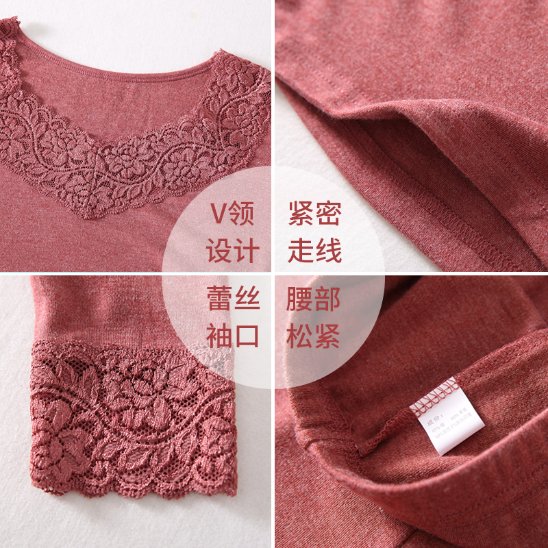 Autumn and winter women's high-stretch lace underwear set V-neck body autumn clothes sanitary pants warm knee pads cotton home clothes