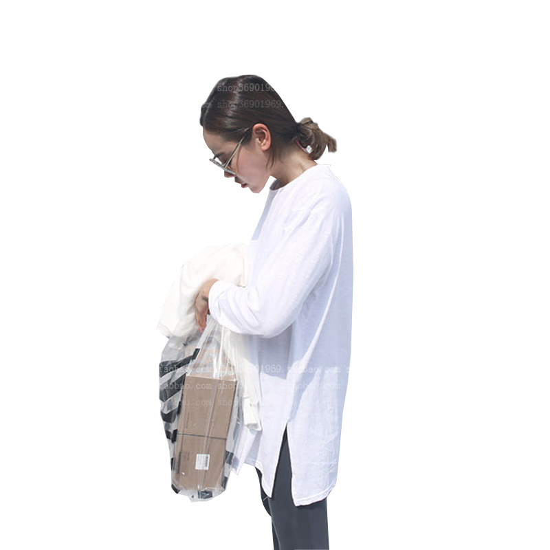 Korean spring and autumn simple and versatile split solid color mid-length bottoming shirt cotton white t loose round neck long-sleeved T-shirt women