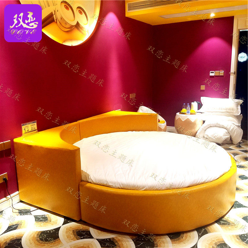 Couple round bed hotel sex bed small apartment double multi-function electric bed club vibrating bed theme homestay bed