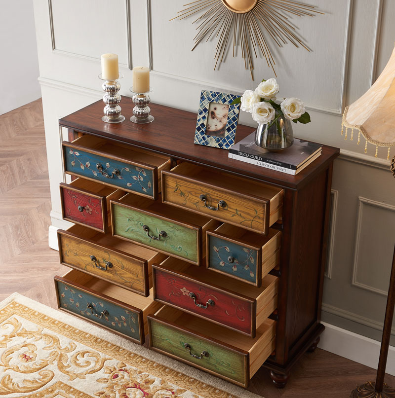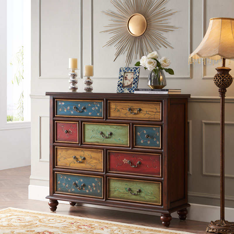 American Country Ninth Bucket Cabinet of Solid Wood Retro Porch Cabinet Bedroom Cabinet Passage Cabinet drawer drawer