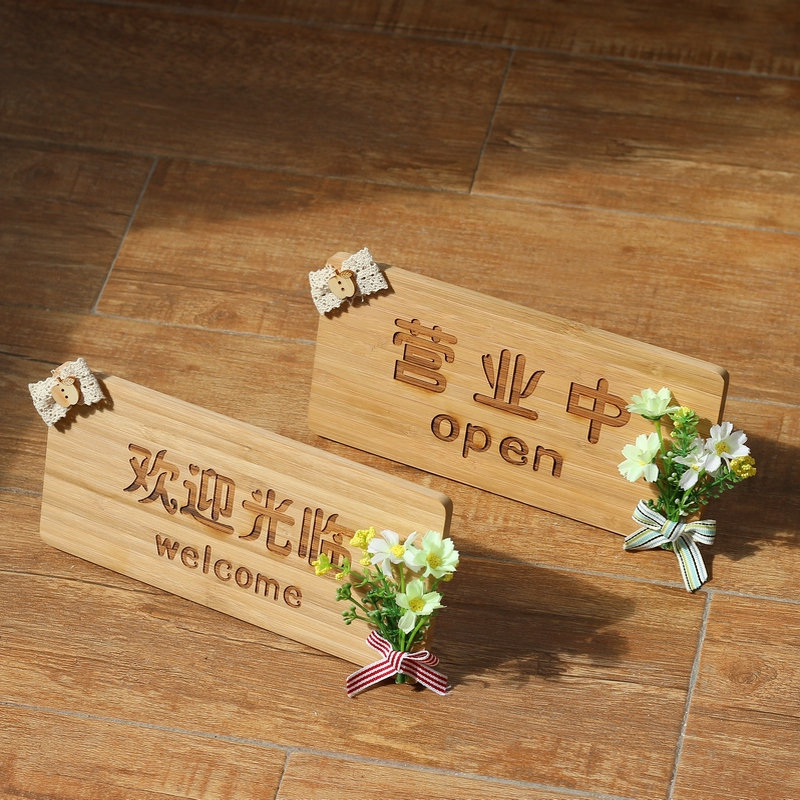 Bamboo brand bamboo carving creative table card shop platform card stand house card business conference card can be customized text