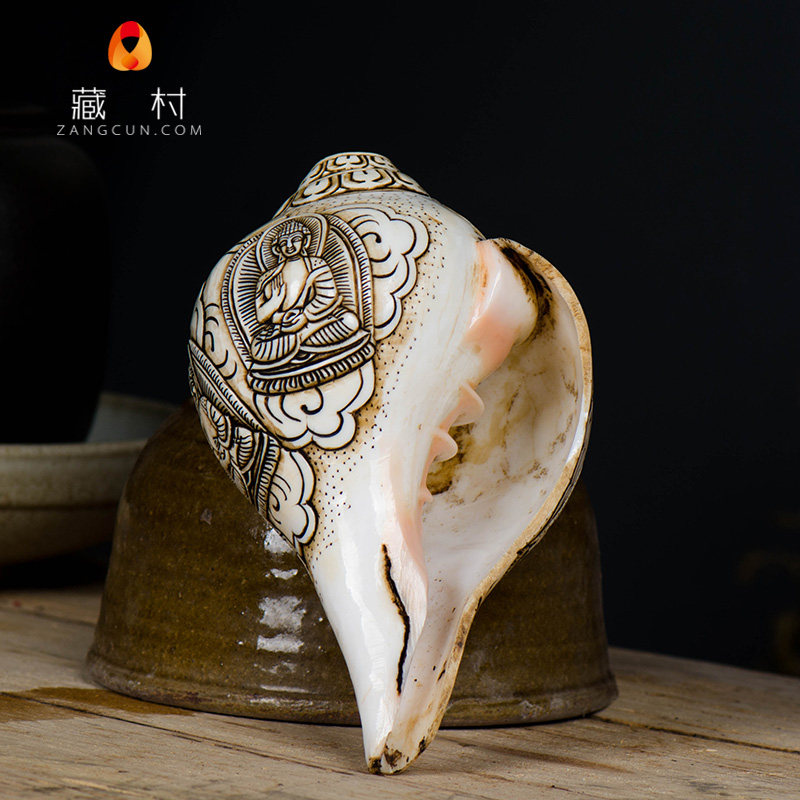 Nepalese White Sea snail Buddha's home levoo bio-right-handed handcarved flowers Five square Buddhofer indoor Buddha front for furniture-Taobao
