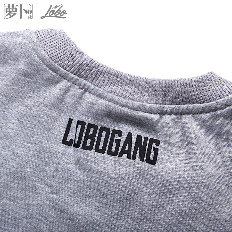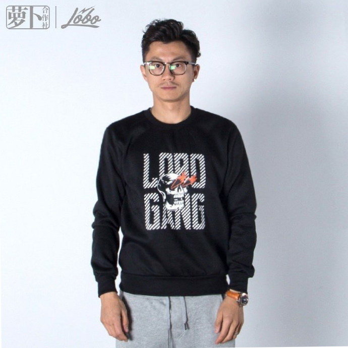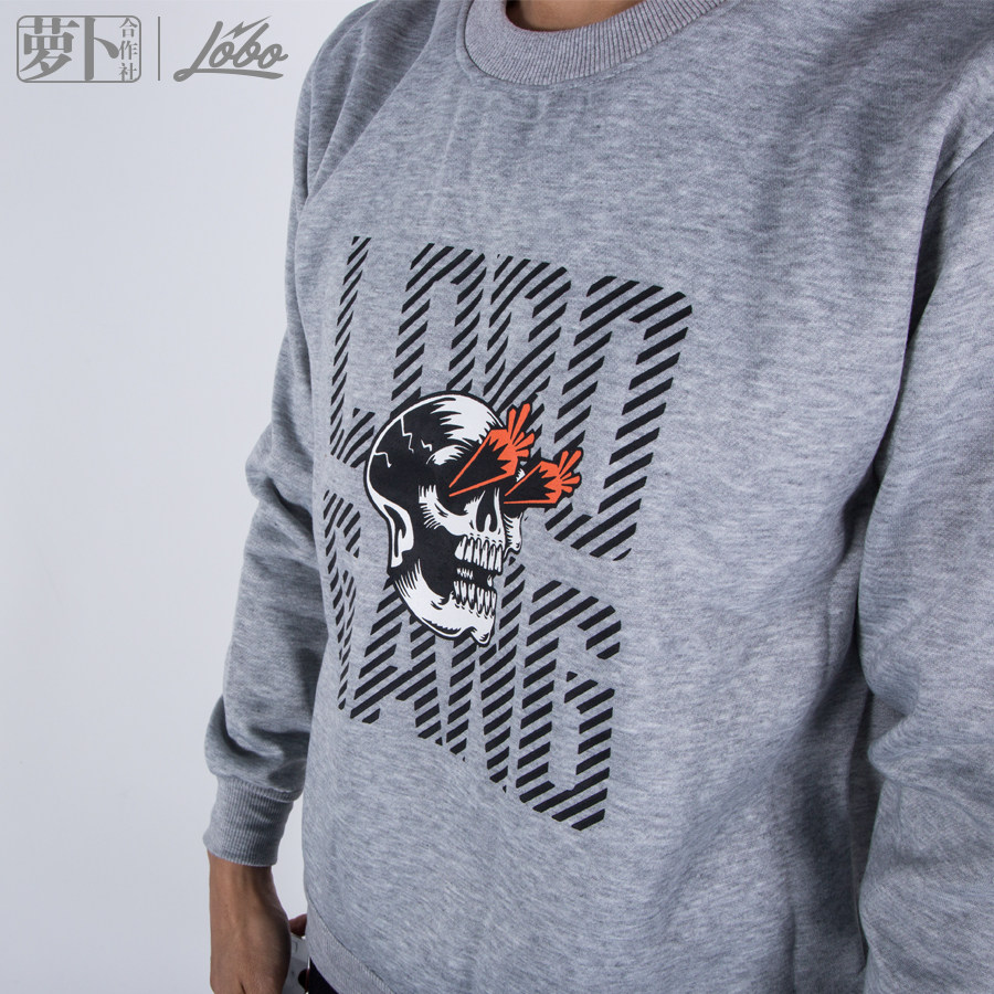 (Rob Cooperative) Chen Zhen same men's cotton long-sleeved Rob skull plus velvet round neck thick cotton T black gray