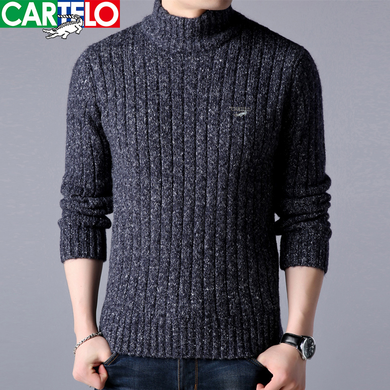 Cardilo Crocodile Men's Sweater Youth Thickened Warm Turtleneck Middle-aged Solid Color Loose Knit Sweater