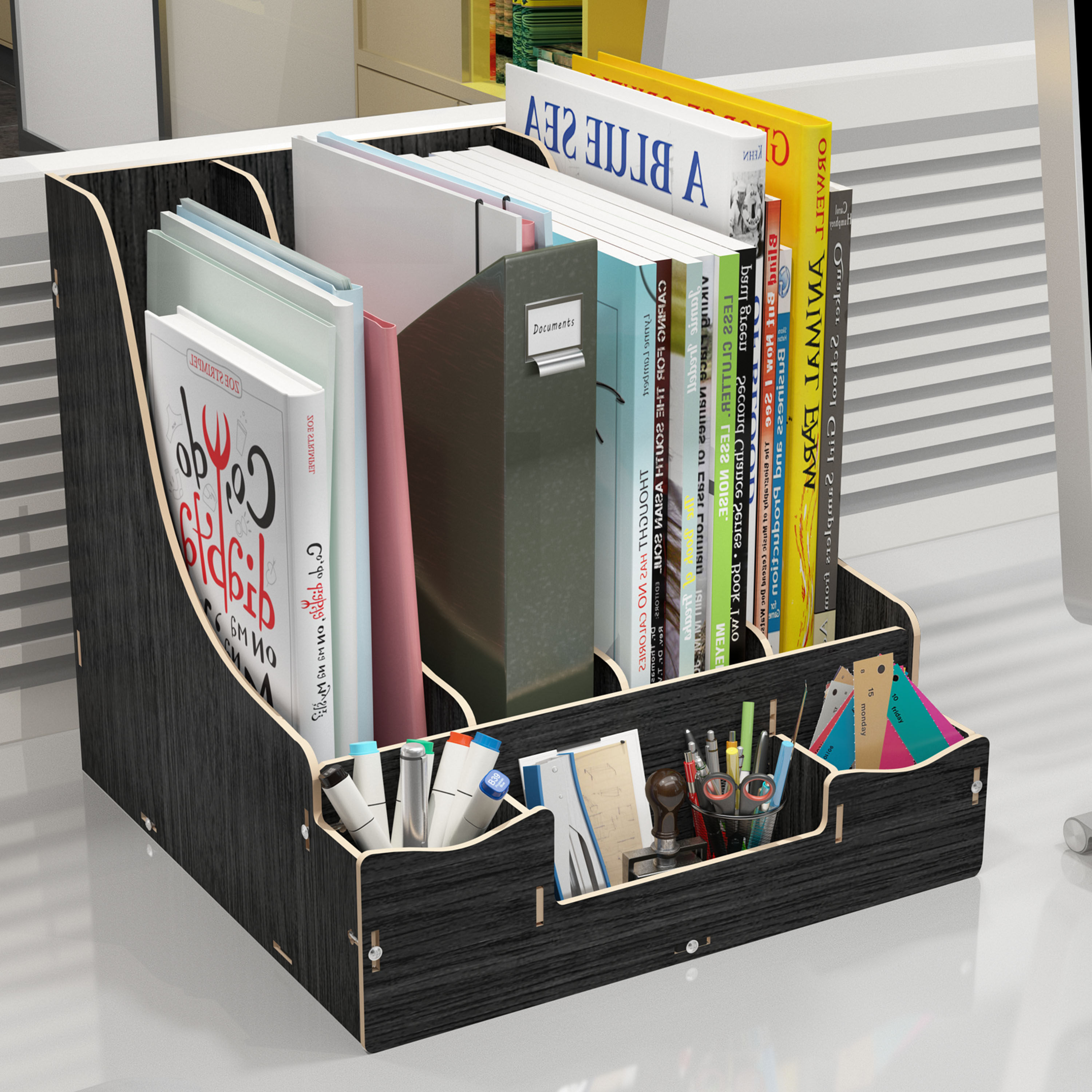 Desktop file collection box creative wood quadruple data sorting and summarizing box fileframe plant frame