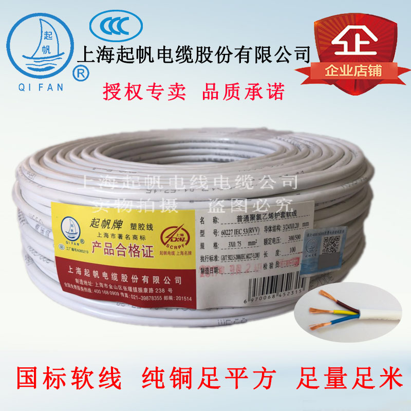 Sails Wire & Cable RVV3 * 0 5 3 0 75 75 1 0 1 5 2 5 4 squared soft jacket line Three-core electric
