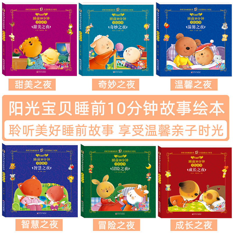A full set of 6 sunny baby 10 minutes before bedtime Beautiful painted story ten sweet night Warm adventure growth wonderful wisdom Large font color pattern Zhuyin version 0-6 years old children's bedtime story book before bedtime