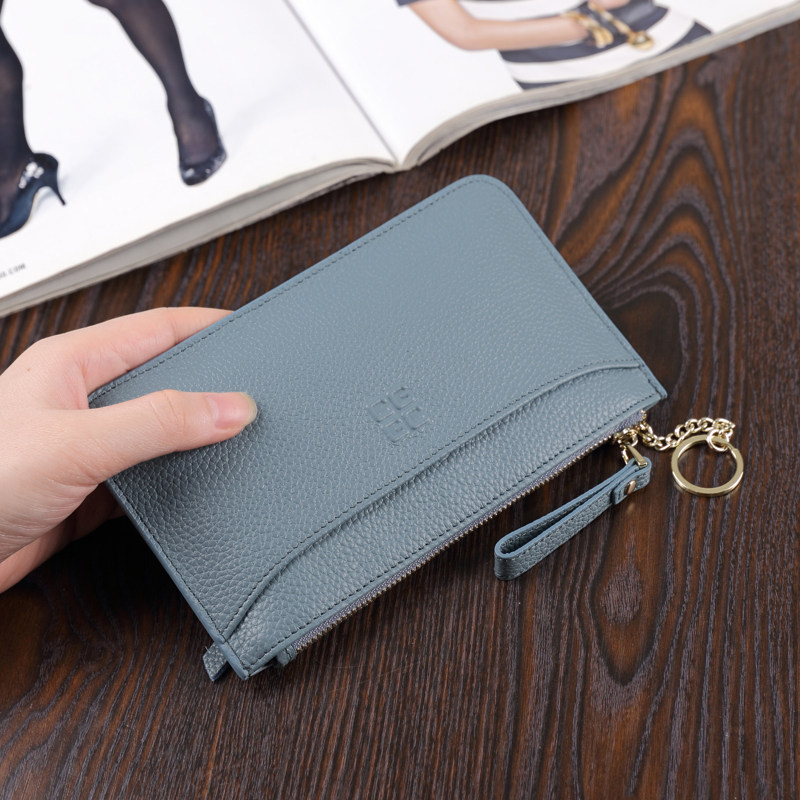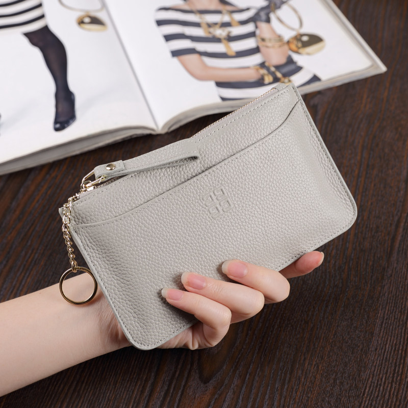 2021 big leather long small wallet women ultra-thin solid color small fresh leather ticket holder simple zipper mobile phone bag tide