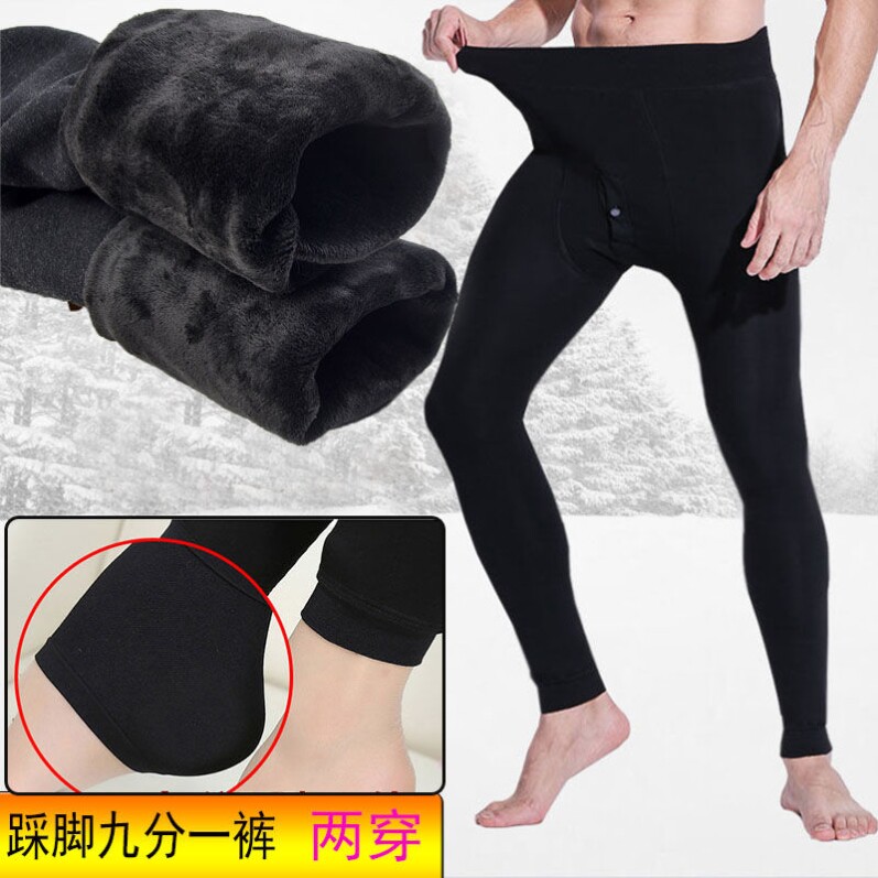 Foot-in-foot lap pants male warm pants plus suede thickened large size high waist tight fit winter elastic body sanitary pants female