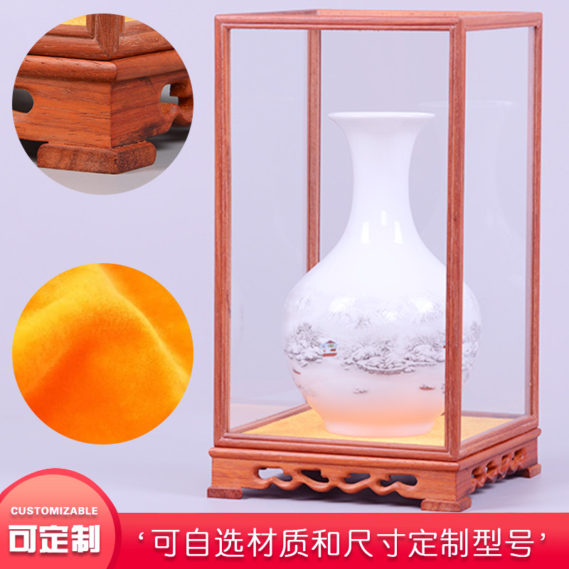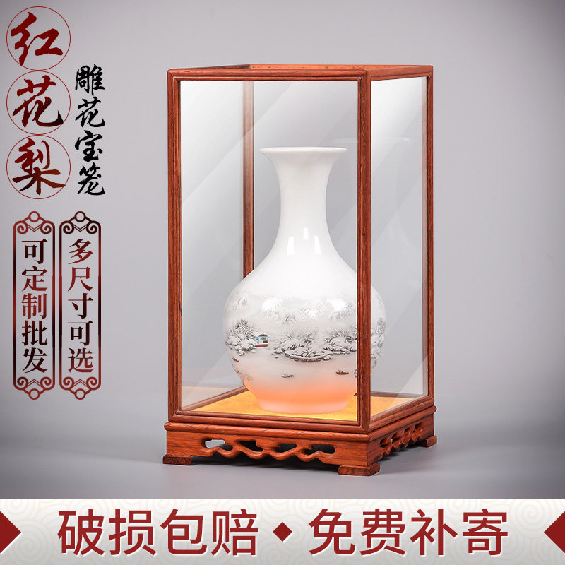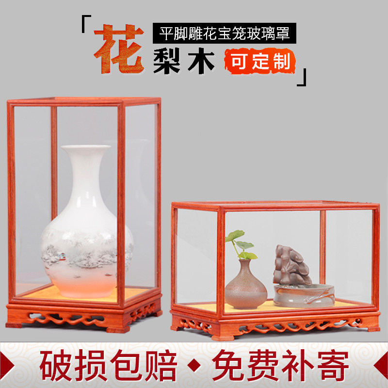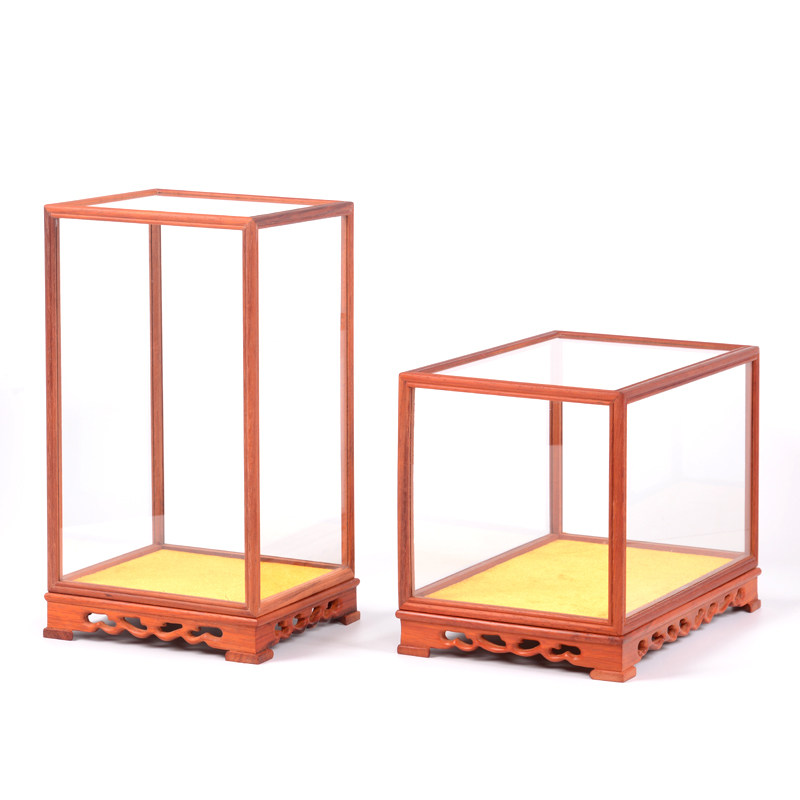 Red Wood Carved Glass Cover Pendulum Buddha transparent display Dust cover Process Gift pendulum decoration Antique Base Solid Wood Box Buddha Niche
