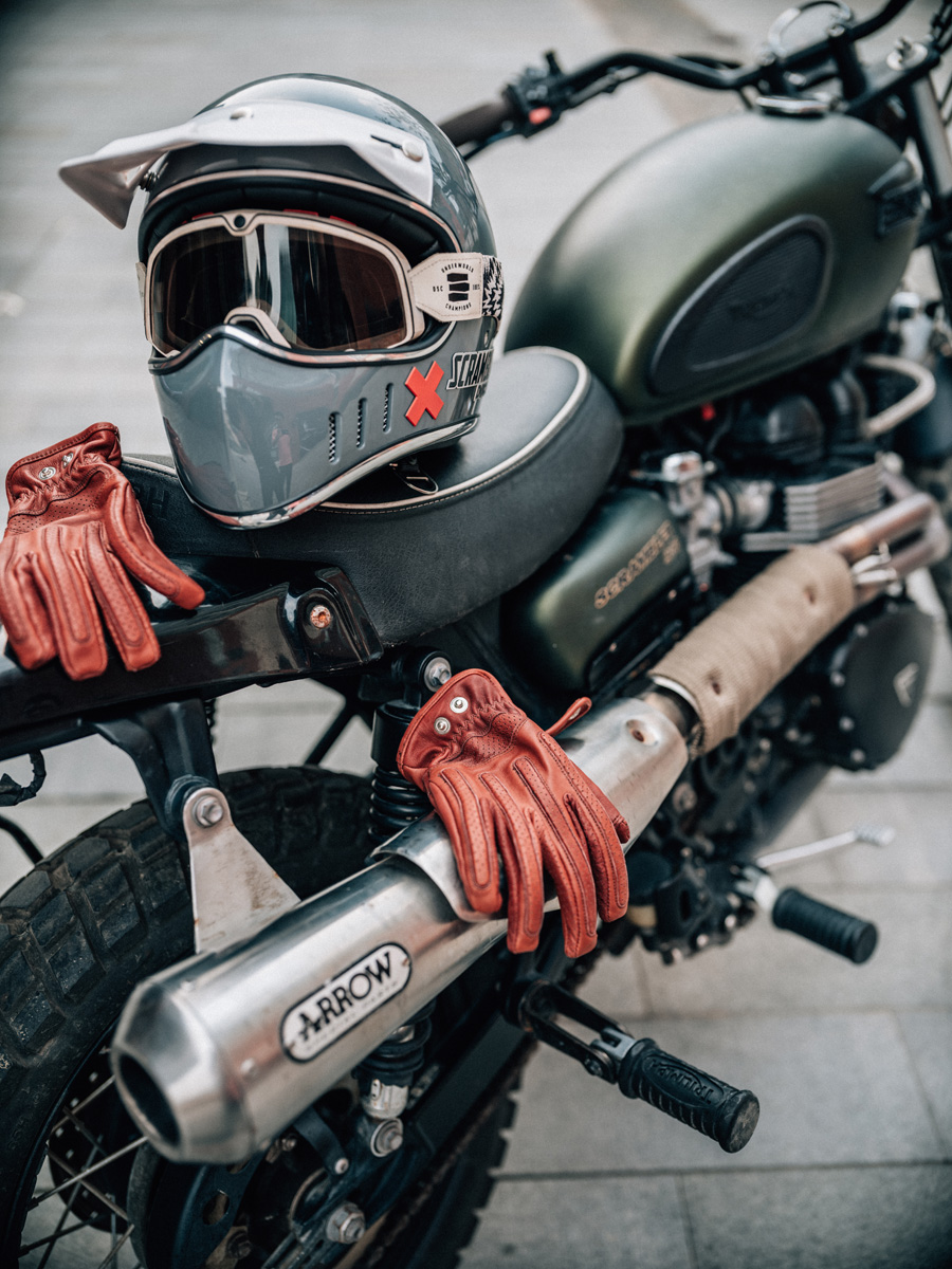 FG retro tire sheepskin sterling silver buckle motorcycle riding motorcycle Harley spring and autumn touch screen fall-proof leather men's gloves