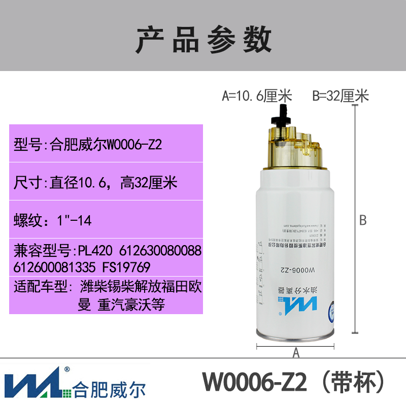 Hefei Weir W0006-Z2 Diesel Filter Element 612630081335 Oil-Water Separator PL420 Filter Grid
