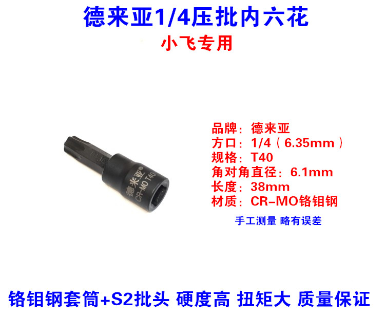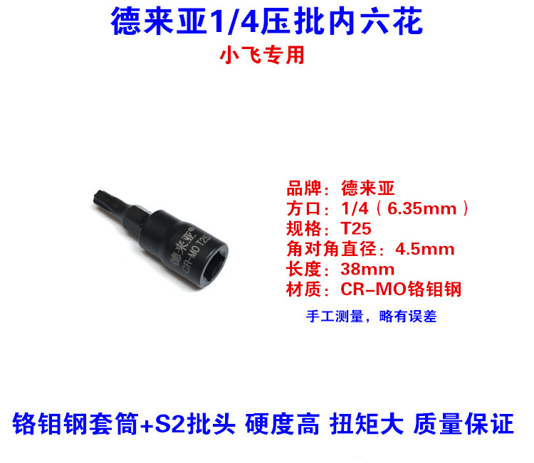 Delaiya 1 4 pressure batch sleeve Pneumatic screwdriver sleeve Six flower batch head hexagon pressure batch T10T15T20T25T30
