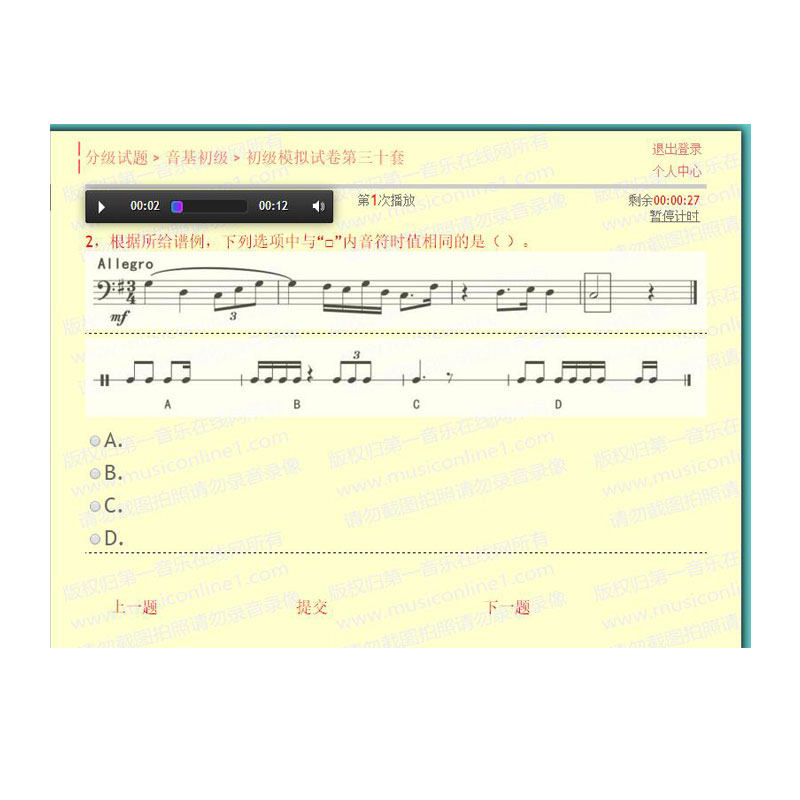 2019 Summer Sound base exam Question Bank Intermediate Beijing online simulation questions Central Conservatory of Music Practice questions
