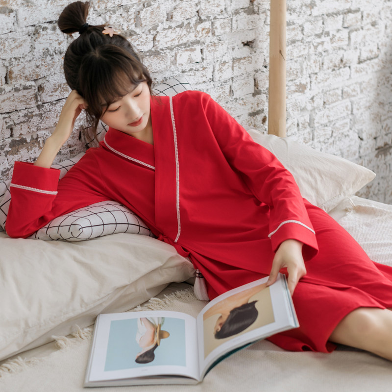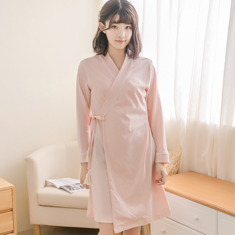 China Wind Hanfu Sleeping Dress Lady Spring Autumn Thin style pure cotton sleepwear cute sexy palace Sexy Palace Wind Long Sleeve Ancient Wind Bathrobe