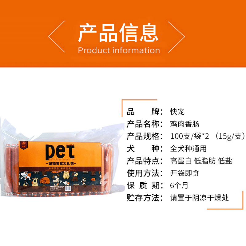 Dog ham sausage 100 pieces * 2 wholesale teddy calcium and salt-free puppy snacks training sausage whole box