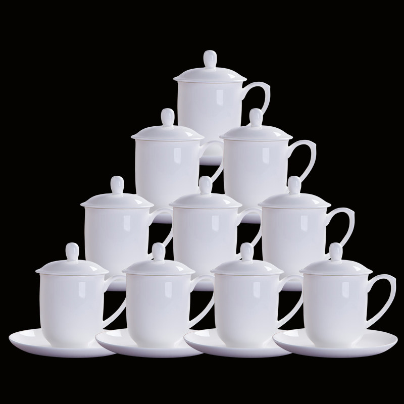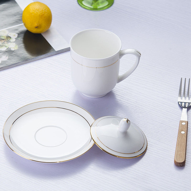 Jingdezhen ceramic tea set bone china with lid hotel water cup with gold description office conference cup household tea cup 10 sets