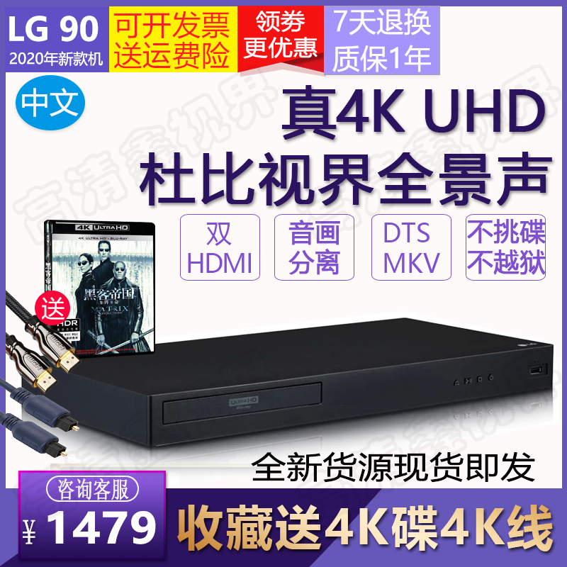 (2021 New) LG UBK90 4K Blu-ray Player UHD HDR 3D Blu-ray Player DVD Disc Player
