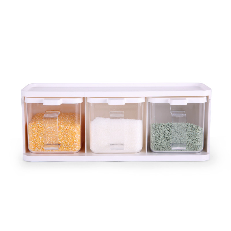 Japanese Kitchen Plastic Seasoning Box Suit Creative sauce Box Tank Bottle Suit Salt Tank Sugar Jars Storage layer shelf