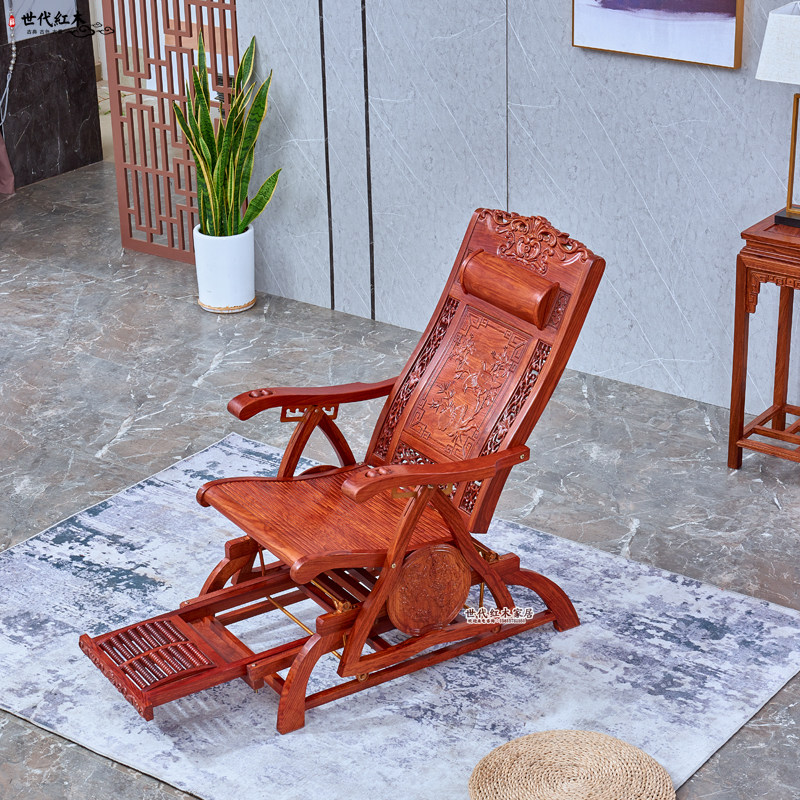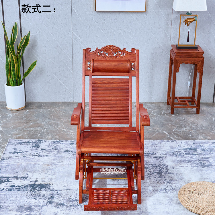Mahogany rocking chair rosewood reclining chair rocking chair hedgehog rosewood elderly leisure chair solid wood lazy balcony lunch break chair