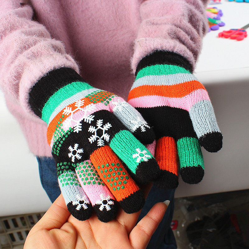 S4 winter boys and girls 5 - 12 year old students warm riding cartoon cute thickening fingers and fingers