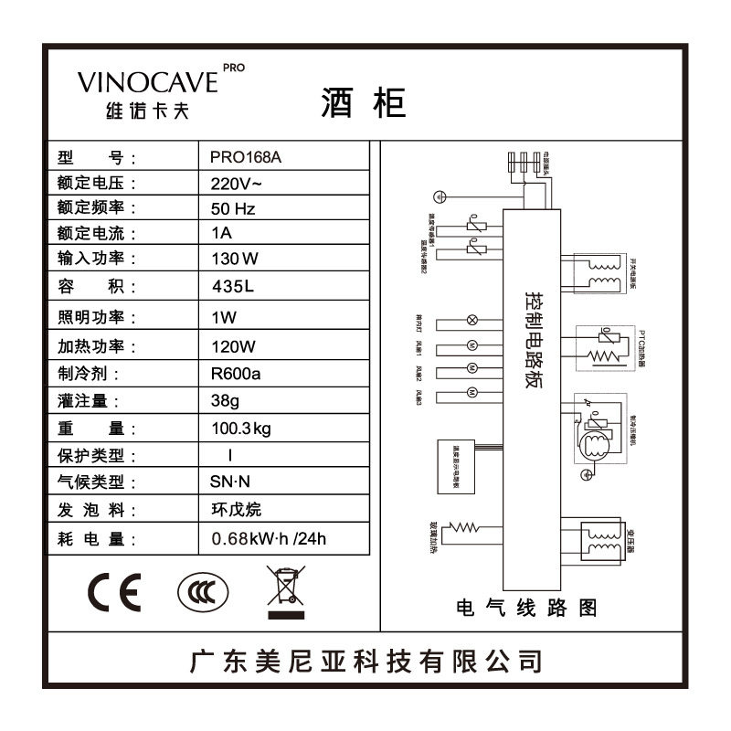 Vinocave Vinocave PRO168A compressor constant temperature wine cabinet Household high-end living room refrigerator