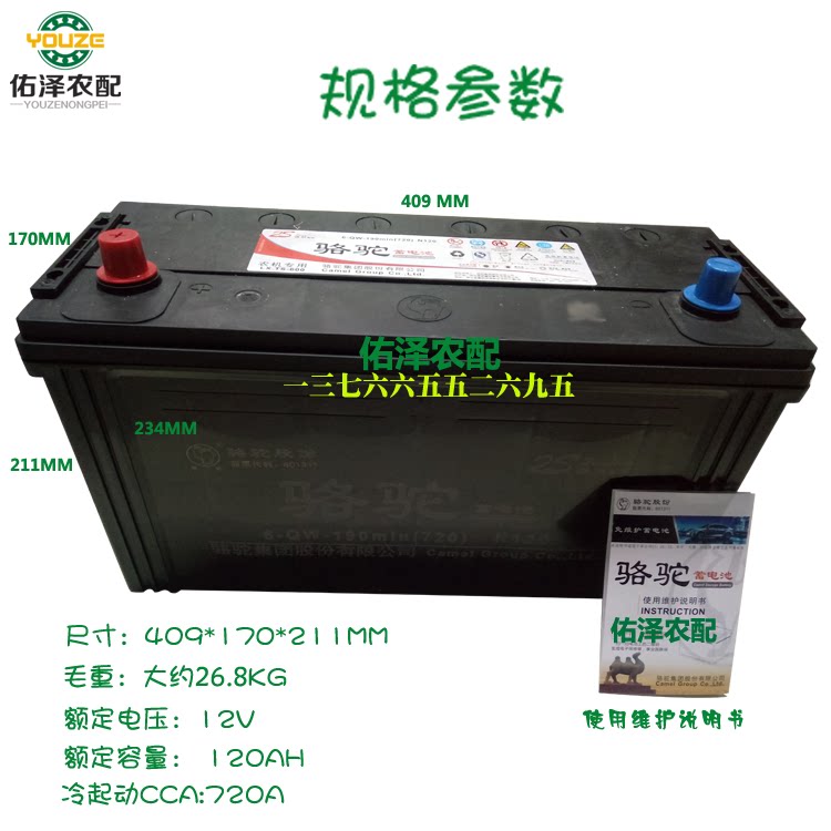Camel agricultural machinery special battery 2S120AH car battery 6-QW-185min (730)N120 tractor