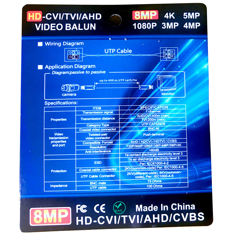 Monitoring network route transmitter 8 million coaxial high-definition transmitter anti-interference lightning protector 5MP8MP pure copper BNC