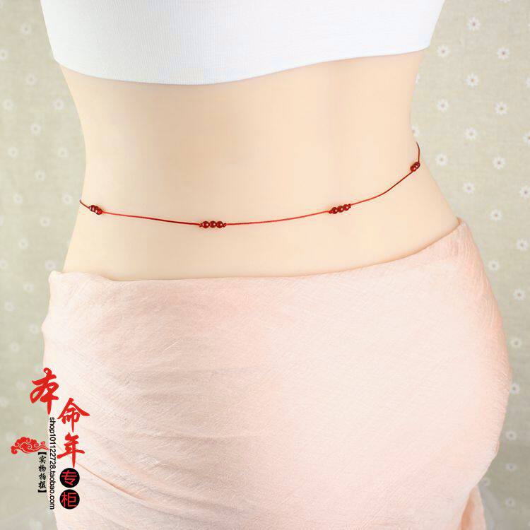 Hand woven natural quality red Manau red waist chain red waist rope slim down belt Ben-year-old female original ornament