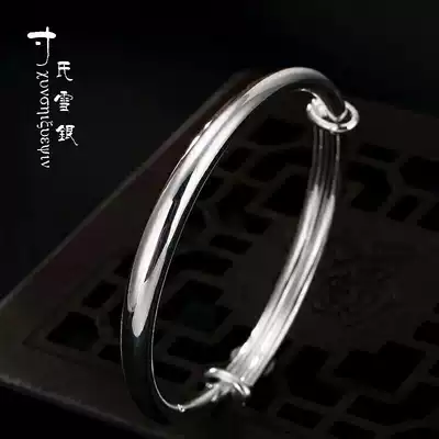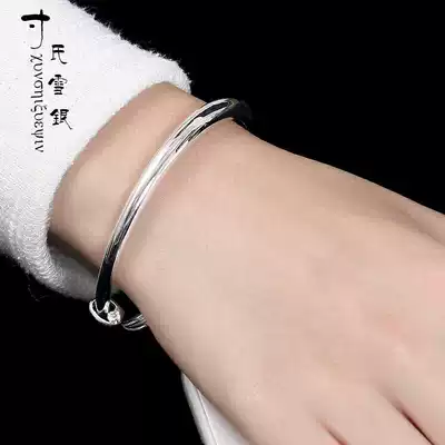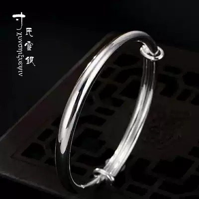 Yunnan Dali snow yin S 99.99 million foot ethnic smooth round bar push-pull bracelet go ma quan pure silver fashion