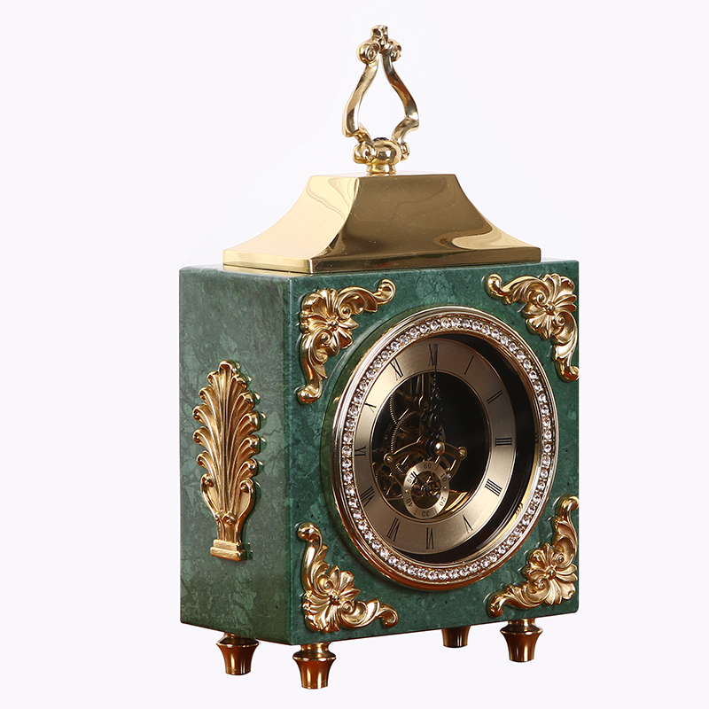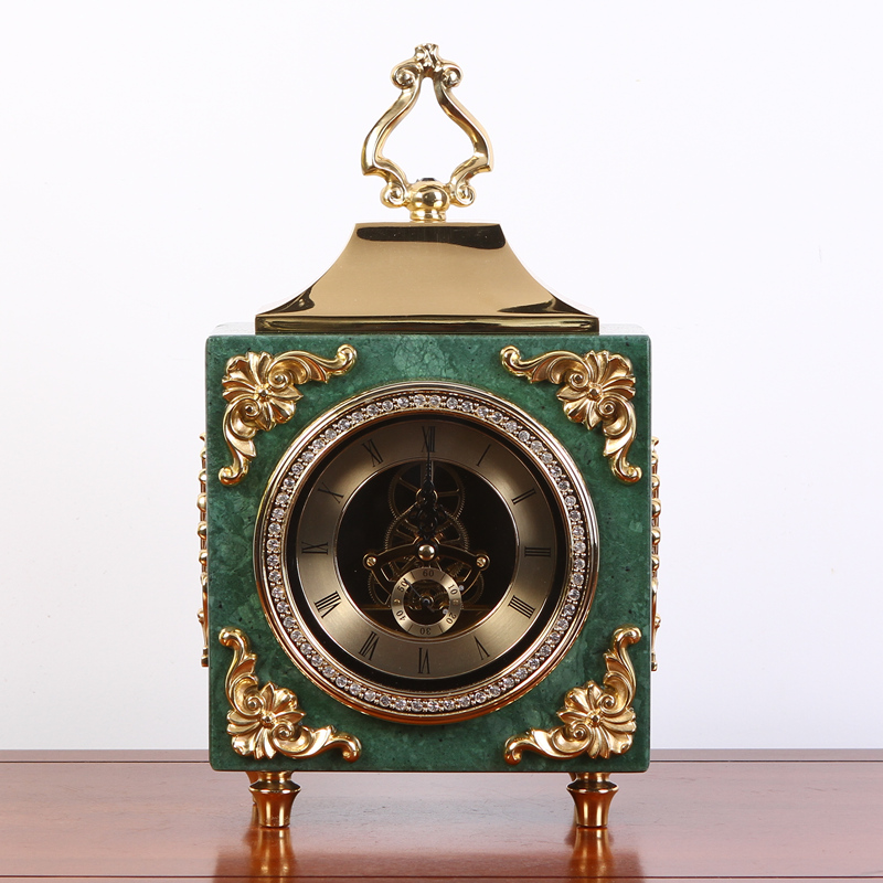 Eurostyle American Ancestral Mother Green Seat Clock Pendulum with Xuanguan Living room Luxurious Villa Decoration Clock Bookcase Desk Bronze Bell