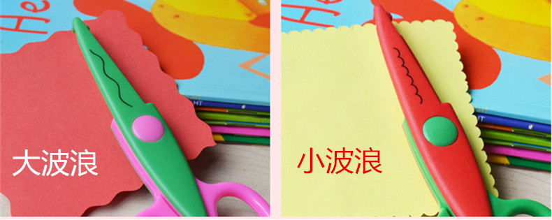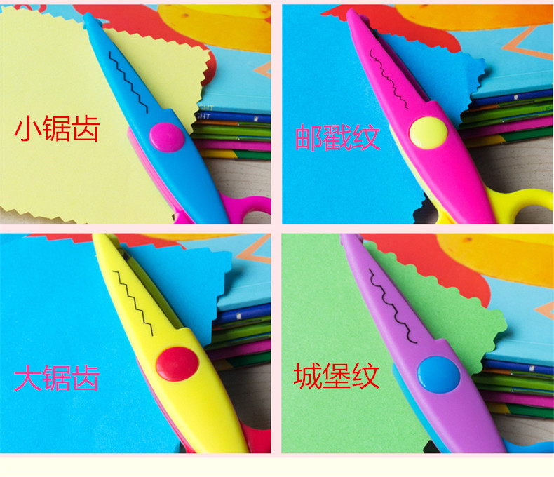 Set of 6 scissors 1 large wave scissors 1 small wave scissors 1 large sawtooth scissors 1 small sawtooth scissors 1 castle pattern scissors 1 cut-off ruler scissors