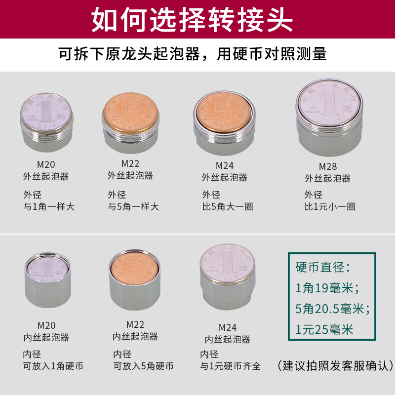 Tap adapter accessories Water purifier M20 22 24 28 28 wire fine tooth change Inner Silk 4 Coarse Tooth Full Copper