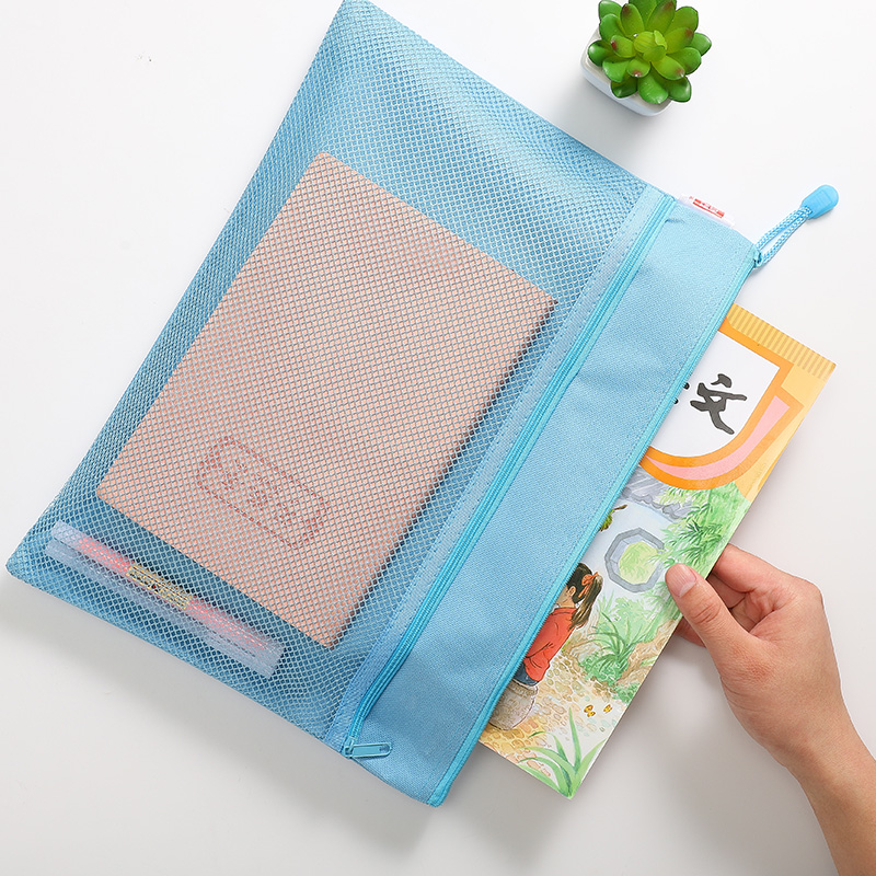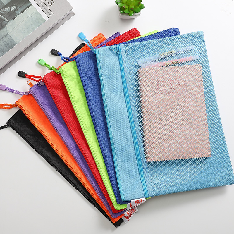 True Color A4 Double Layer File Bag Zipper Bag Transparent Canvas Waterproof File Bag Student Test Paper Information Storage Bag Office Supplies Folder Stationery Box Test Paper Stationery Bag Information Book
