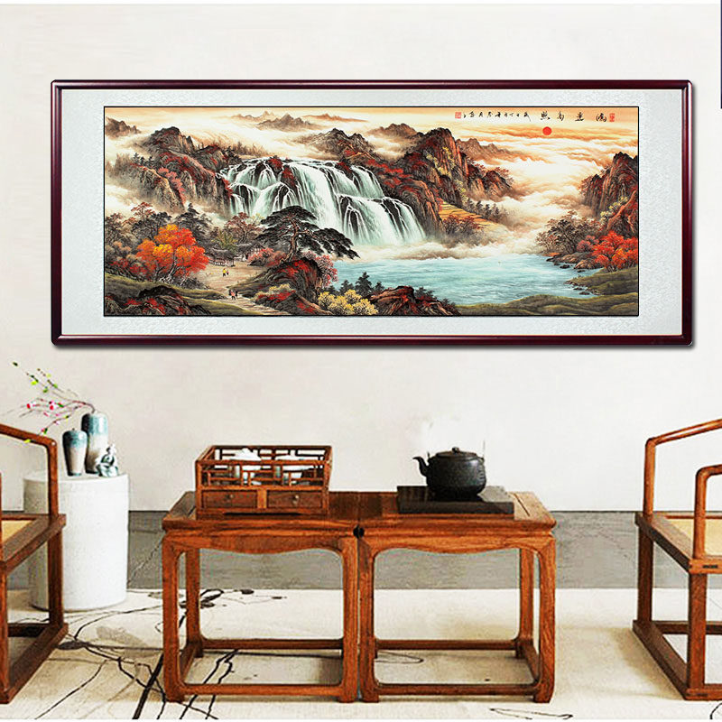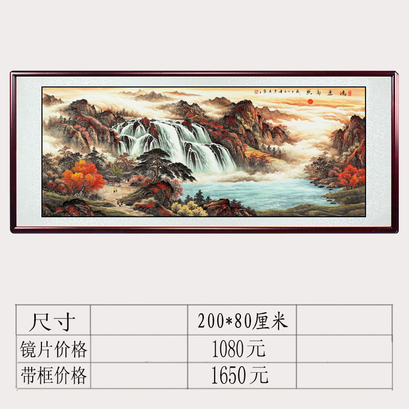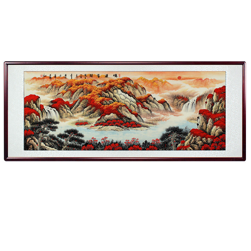 Hand painted landscape painting Hongyun High photo country painting solid wood frame villa living room New Chinese style decoration painting Feng Shui hang painting