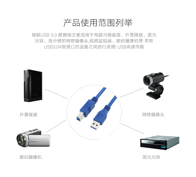 USB 3.0 Type A Male to B Male Printer Cable Cord 30cm 0.3m