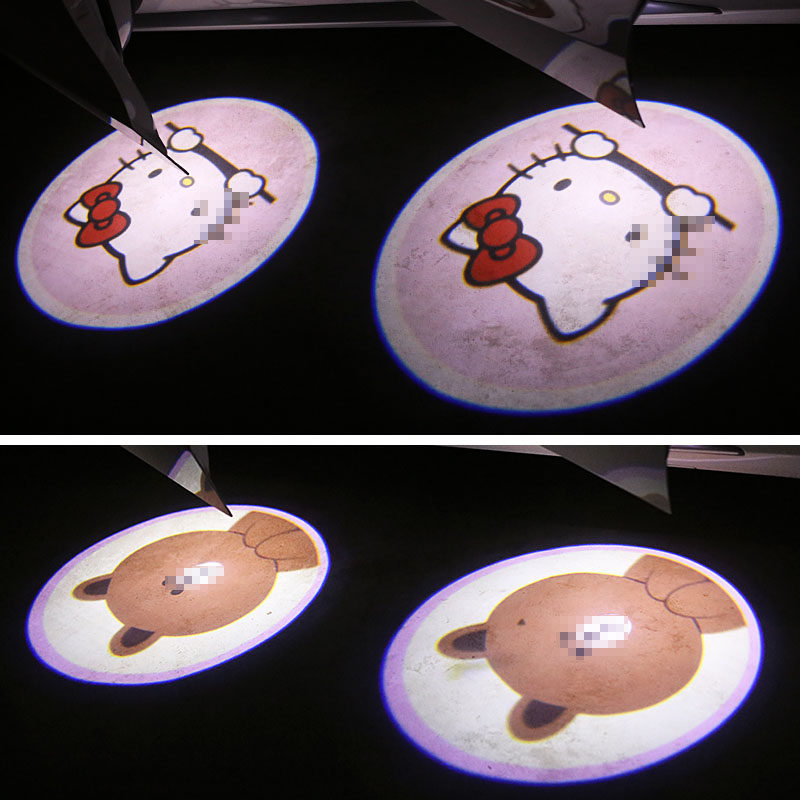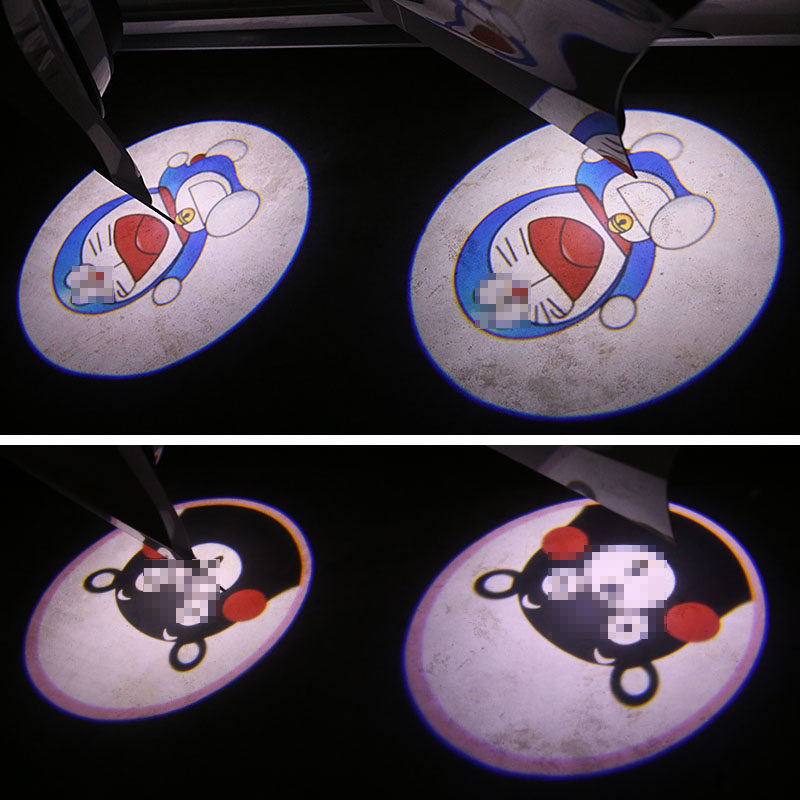 2 free mail cartoon cute welcome light Car projection light Distortion-free punch-free wiring-free wireless welcome light