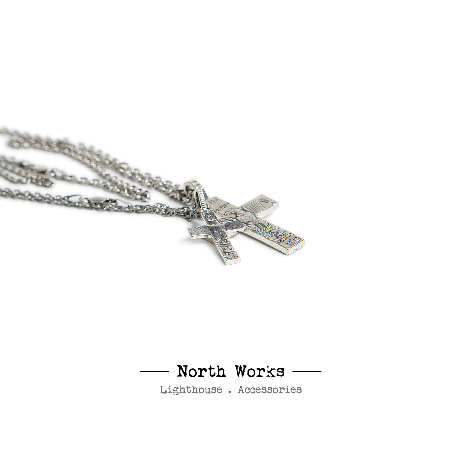 NORTH WORKS man-made ancient silver coin cross necklace couple version N060 061